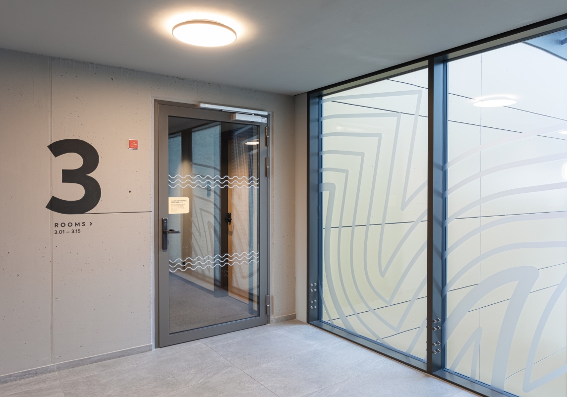 Sie sind auffallend unauffällig und bringen mit ihrer Pulverbeschichtung den Sichtbeton schön zur Geltung, haben also durchaus ästhetische Qualitäten.
